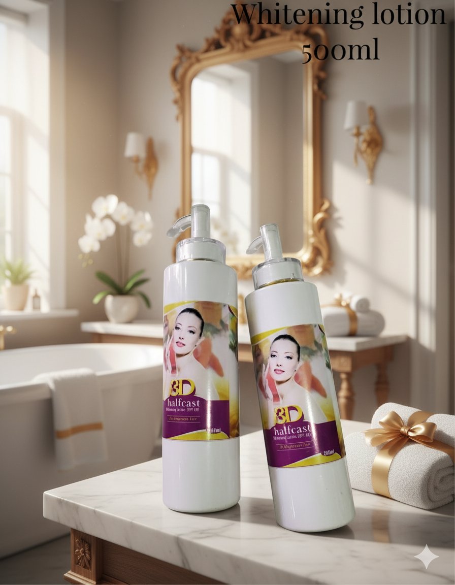 3D Halfcaste whitening lotion is an extreme whitening organic based cream made with natural moisturizers and organic fruit acids to help treat vast skin disorders such as; uneven skin, stretch marks, dark spots to unveil a whiter, supple, youthful, spotless glow.