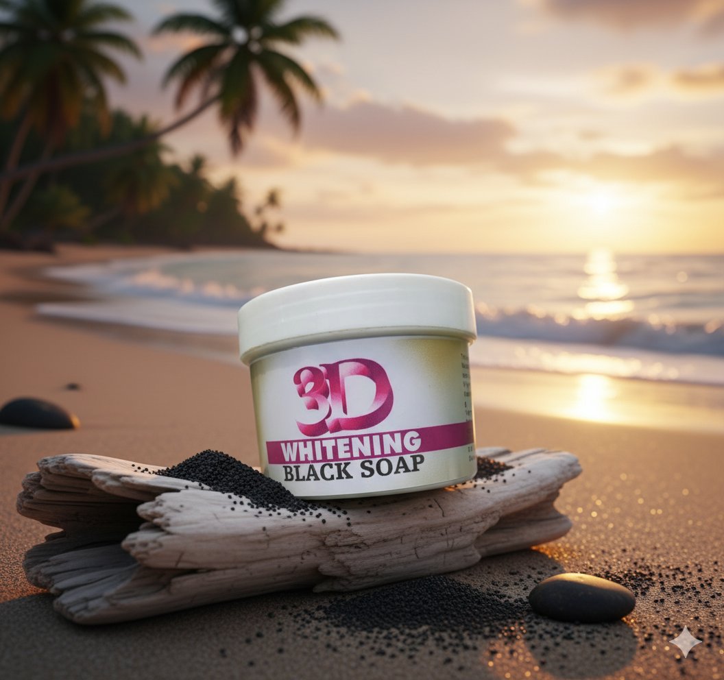 3D black soap is not your regular black soap because if it’s caring, antioxidant and antibacterial properties, enriched in oils to deeply moisturize, lighten, soften and protect your skin from sun damage it also help to eliminate unwanted dead skin cells by exfoliating the skin for a radiant feel.
